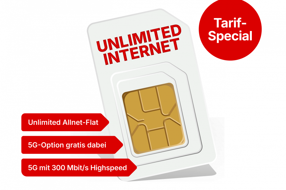 Ihr neuer Tarif: Unlimited 5G Allnet-Flat. 10€ Sonderrabatt nur noch bis 08.08.2025 14:00 Uhr Unlimited 5G Allnet-Flat Das kann Ihr neuer Tarif. monatlich 39,99 €… Weiterlesen »Unlimited 5G Allnet-Flat