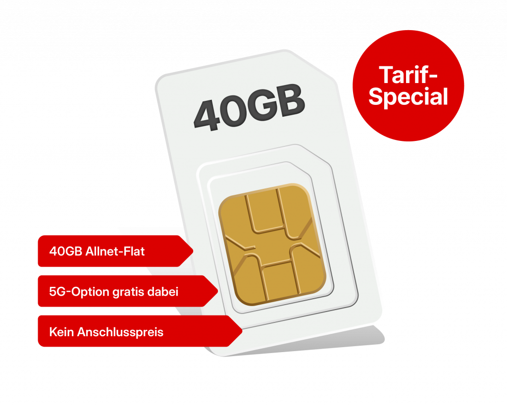 Gilt bei Abschluss eines klarmobil Mobilfunkvertrags im Tarif Allnet Flat 40GB im Netz der Vodafone. Mindestvertragslaufzeit 24 Monate, Kündigungsfrist 1 Monat zum Laufzeitende. Danach unbefristet und jederzeit mit einer Frist von einem Monat kündbar. Monatlicher Paketpreis 19,99 EUR, Anschlusspreis 0 EUR, in den ersten 24 Monaten 10€ Rabatt. Eine einmalige Zuzahlung für ein Endgerät fällt ggf. zusätzlich an. Die inkludierte Internet Flat gilt für nationalen Datenverkehr im Mobilfunknetz der Vodafone. Bis zu einem Datenvolumen von 20000 MB in einem Abrechnungszeitraum steht eine max. erreichbare Geschwindigkeit von 50 Mbit/s im Download und 25 Mbit/s im Upload unter optimalen Bedingungen bereit, danach wird die Geschwindigkeit im jew. Monat auf max. 64 kbit/s (Download)/ 64 kbit/s (Upload) beschränkt. Ihre individuell erreichbare Geschwindigkeit ist u.a. abhängig von Ihrem Endgerät und Ihrem Standort. Nähere Infos dazu finden Sie im Dokument „Informationen zu Ihrem Mobilfunknetz“. Standard-Inlandsgespräche in alle deutschen Netze und Mailbox-Weiterverbindungen sind inklusive. Ausgenommen sind bspw. Service- und Sondernummern und alle Rufnummern, auf die eine Weiterleitung durch einen externen Dienstleister erfolgt, z.B. Callthrough-Dienste, sowie Videotelefonate, Datenanrufe, Rufumleitung und Call-Return. Taktung 60/60 Sek. In der SMS Allnet Flat ist der kostenlose Versand inländischer Standard-SMS (maximal 160 Zeichen) in alle deutschen Netze enthalten. Das Angebot gilt nicht für den Massenversand von SMS. Detaillierte Preisinformationen für die Nutzung Ihres Mobilfunk-Vertrages im und aus dem Ausland entnehmen Sie bitte unserer aktuellen Roaming- und Internationalpreisliste und unter www.klarmobil.de/service/preislisten/. Im Start- bzw. Endmonat werden Monatspreis, Paketpreis, Mindestumsatz, Inklusivleistung bzw. Freikontingent anteilig berechnet und zur Verfügung gestellt. Alle angegebenen Preise enthalten die zur Zeit gültige Mehrwertsteuer. Servicepreise entnehmen Sie bitte der Sonderpreisliste. Tarif-Optionen und Upgrades können jederzeit mit einer Frist von 1 Monat gekündigt werden. Weitere Informationen und Bedingungen finden Sie in den Allgemeinen Geschäftsbedingungen für Laufzeitverträge. Anbieter: klarmobil GmbH, Hollerstraße 126, 24782 Büdelsdorf